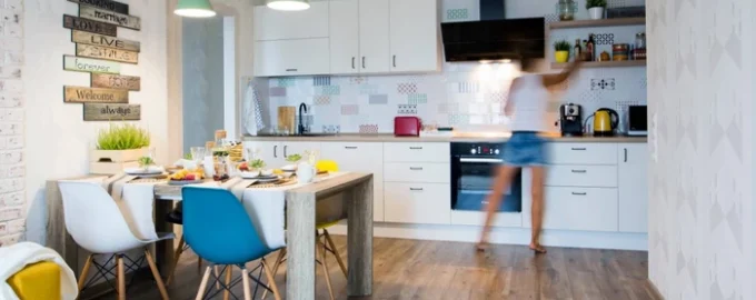 Endast laminatgolv av hög kvalitet påverkas inte av möbelrörelser, särskilt av köksstolarnas frekventa rörelse, av konstant rengöring av golvet och andra köksoperationer.
