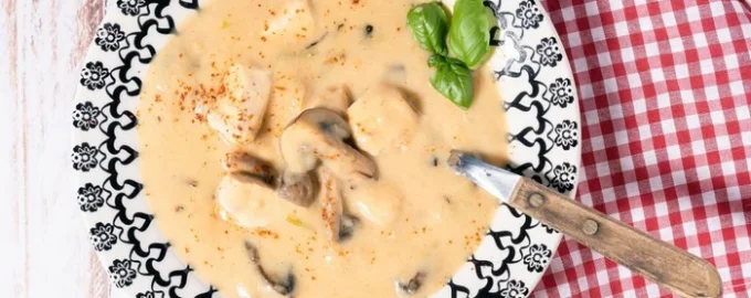 Svampgräddsoppa är den perfekta kombinationen av nytta, smak och enkelhet. Den kan serveras som en komplett middagsrätt eller som förrätt på ett festligt bord.